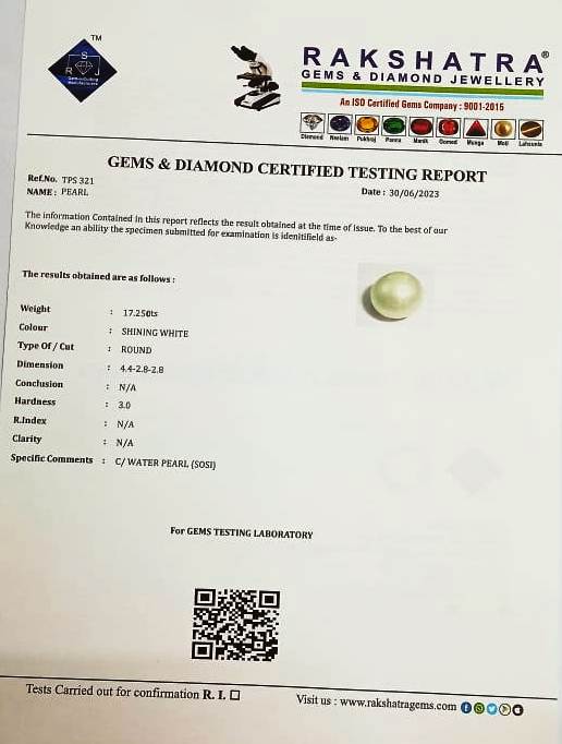 | SPECIFIC COMMENTS: | C / WATER PEARL { SOSI } |