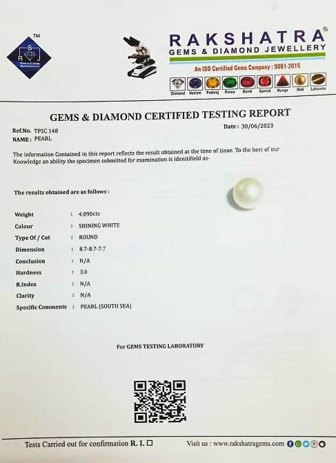 | SPECIFIC COMMENTS: | PEARL { SOUTH SEA }  |