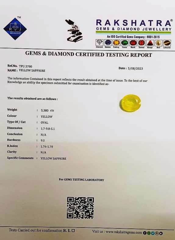 | SPECIFIC COMMENTS: | YELLOW SAPPHIRE |