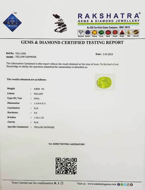 | SPECIFIC COMMENTS: | YELLOW SAPPHIRE |