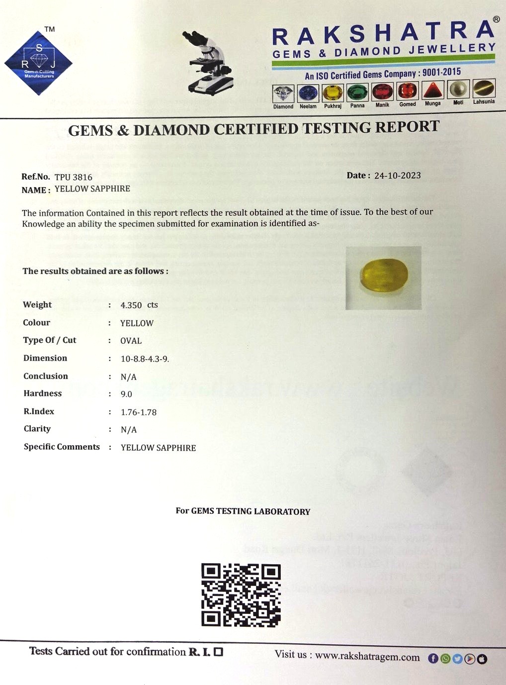 | SPECIFIC COMMENTS: | YELLOW SAPPHIRE |