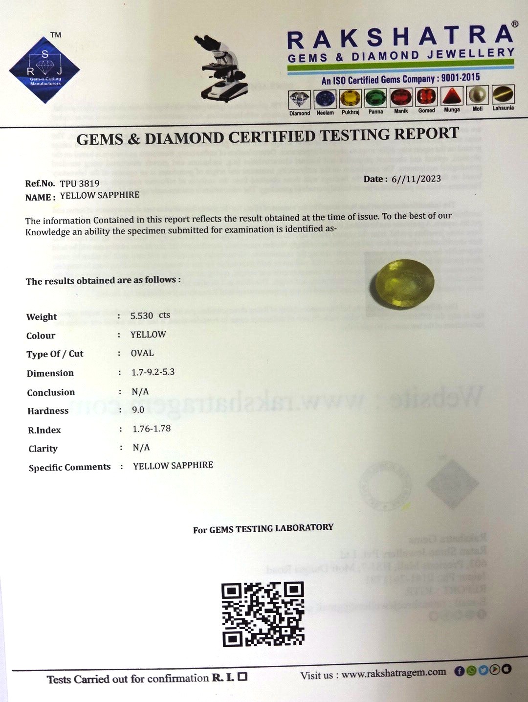 | SPECIFIC COMMENTS: | YELLOW SAPPHIRE |