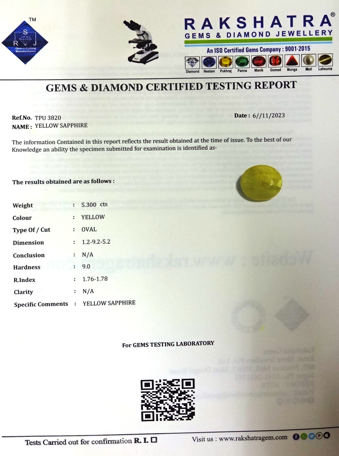 | SPECIFIC COMMENTS: | YELLOW SAPPHIRE |