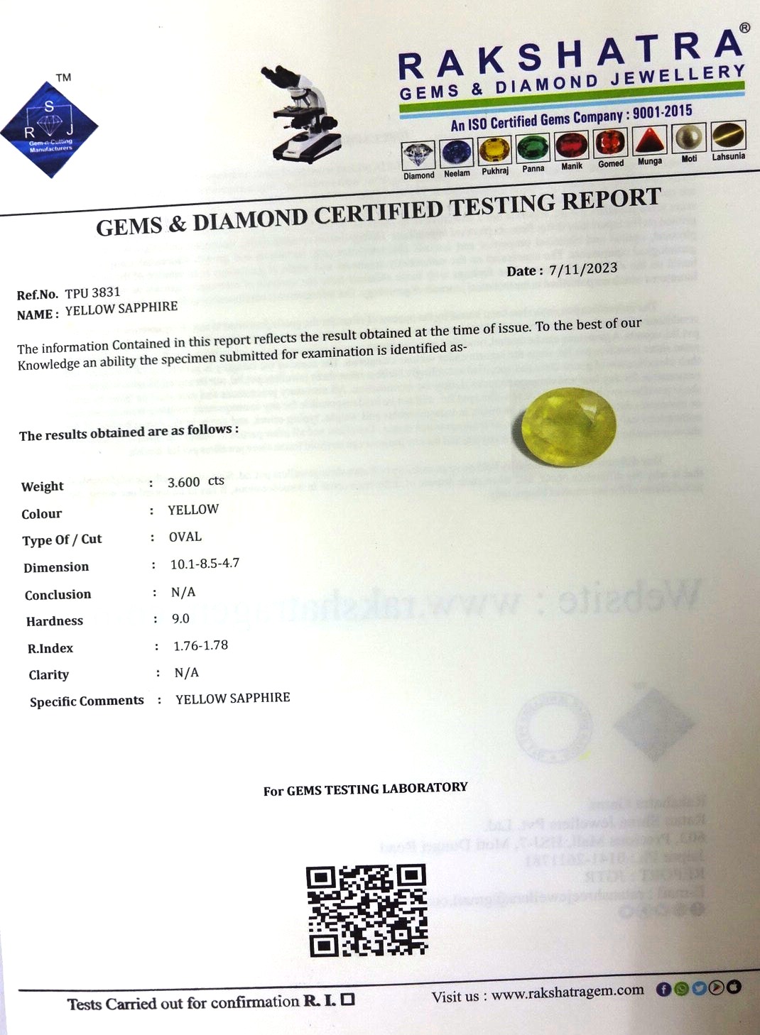 | SPECIFIC COMMENTS: | YELLOW SAPPHIRE |