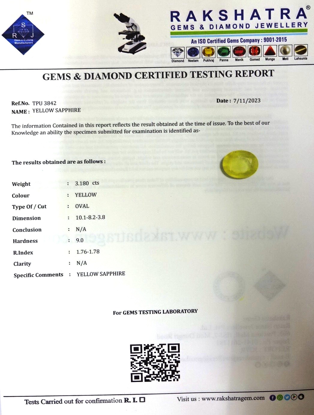 | SPECIFIC COMMENTS: | YELLOW SAPPHIRE |
