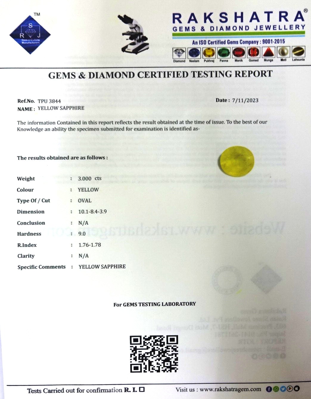 | SPECIFIC COMMENTS: | YELLOW SAPPHIRE |