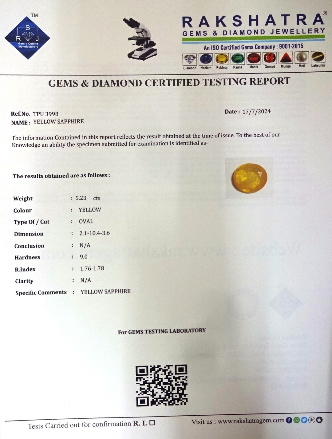 | SPECIFIC COMMENTS: | YELLOW SAPPHIRE |