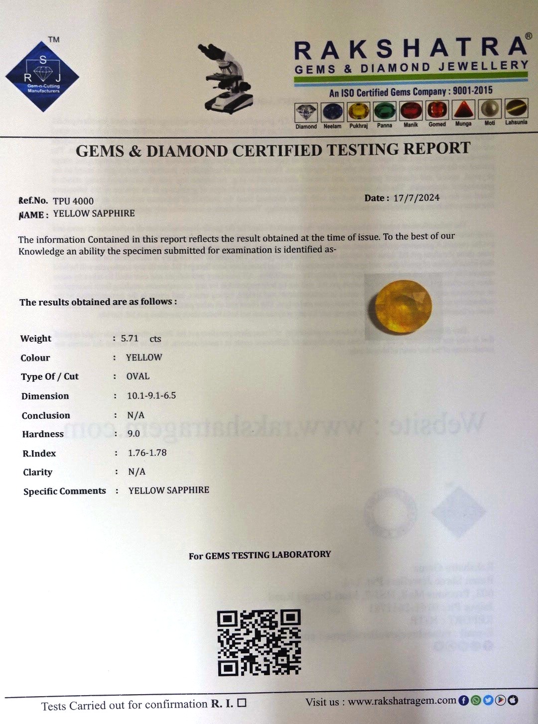 | SPECIFIC COMMENTS: | YELLOW SAPPHIRE |