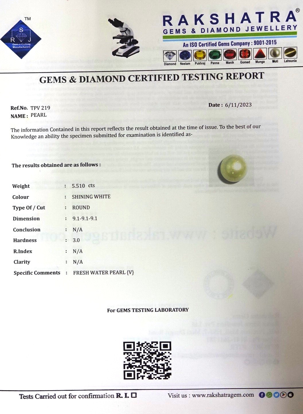 | SPECIFIC COMMENTS: | FRESH WATER PEARL { V } |