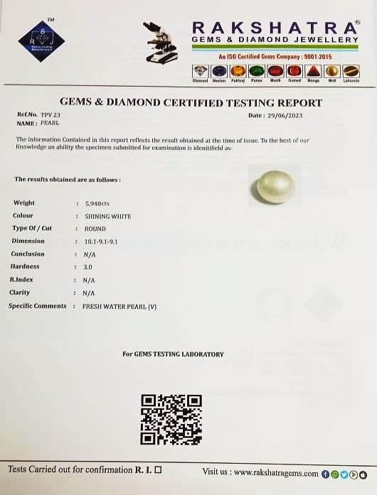 | SPECIFIC COMMENTS: | FRESH WATER PEARL { V } |