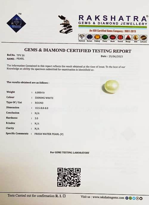 | SPECIFIC COMMENTS: | FRESH WATER PEARL { V } |