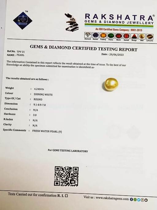 | SPECIFIC COMMENTS: | FRESH WATER PEARL { V } |