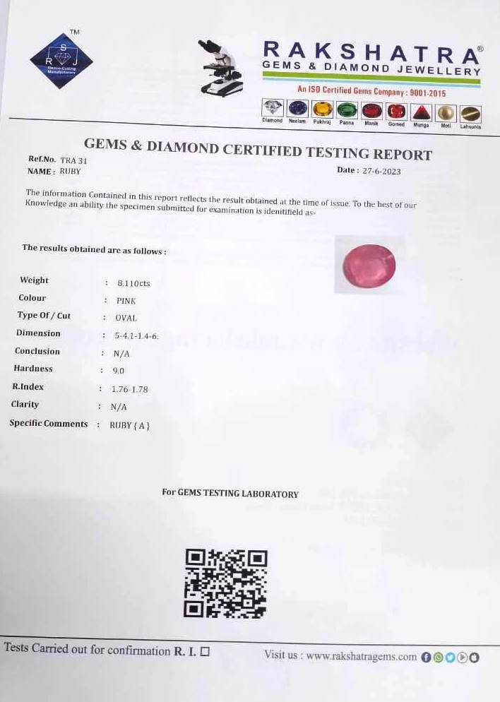 | SPECIFIC COMMENTS: | RUBY { A } |