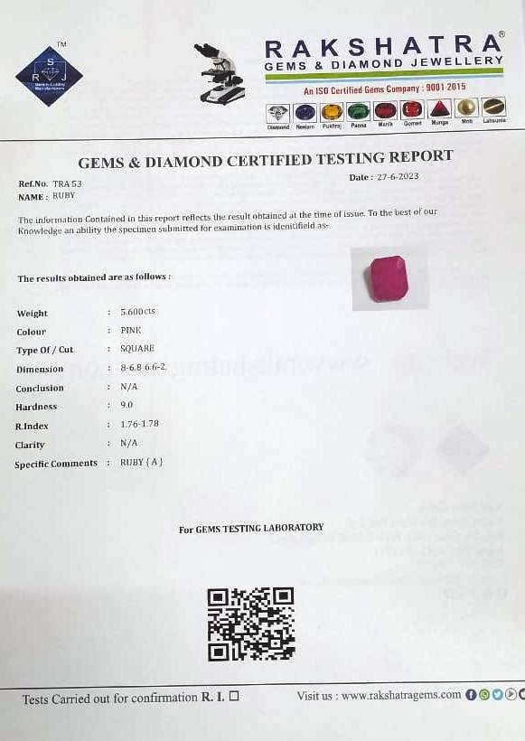 | SPECIFIC COMMENTS: | RUBY { A } |