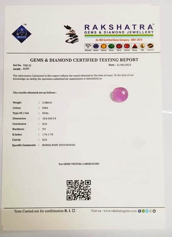 | SPECIFIC COMMENTS: | BURMA RUBY { MAYANMAR } |