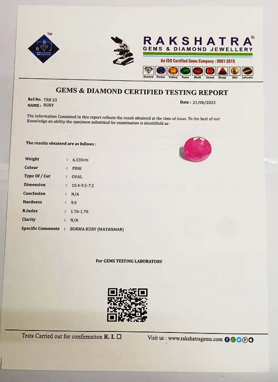 | SPECIFIC COMMENTS: | BURMA RUBY { MAYANMAR } |