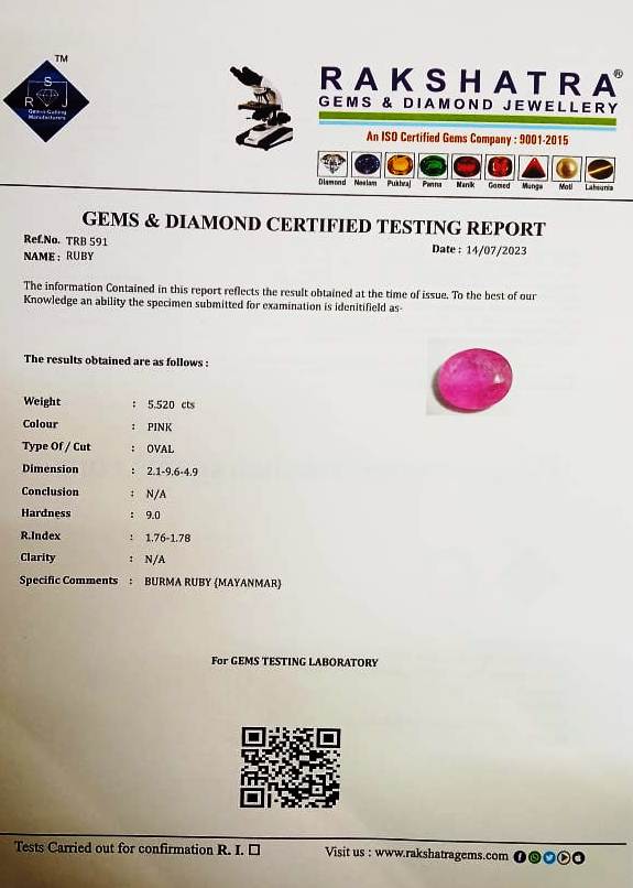 | SPECIFIC COMMENTS: | BURMA RUBY {MAYANMAR} |