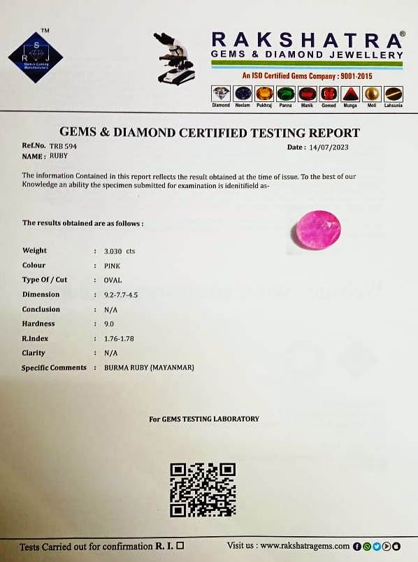 | SPECIFIC COMMENTS: | BURMA RUBY {MAYANMAR } |