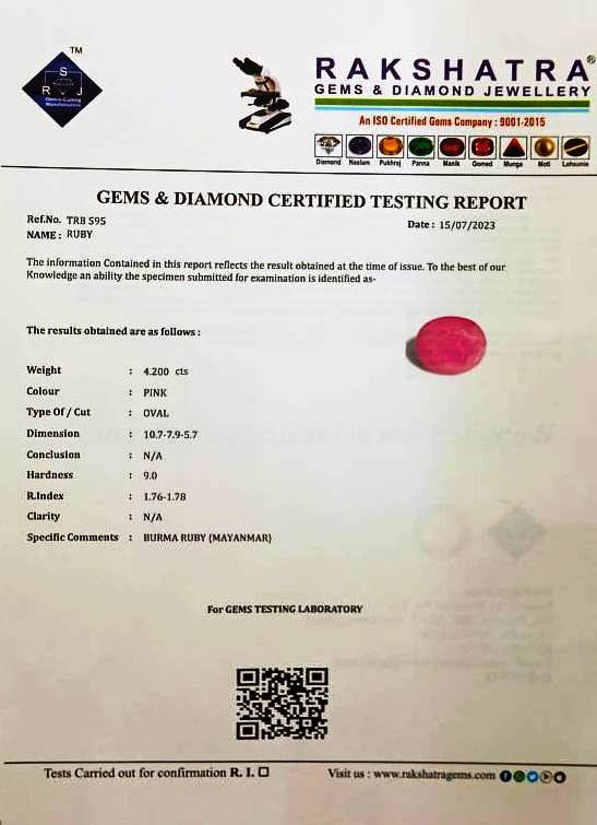 | SPECIFIC COMMENTS: | BURMA RUBY {MAYANMAR} |