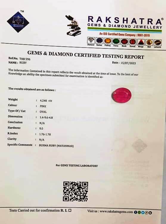 | SPECIFIC COMMENTS: | BURMA RUBY {MAYANMAR} |