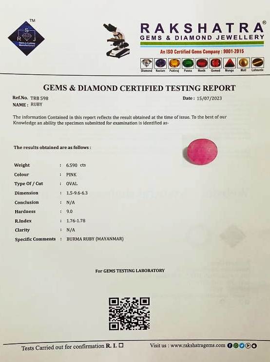 | SPECIFIC COMMENTS: | BURMA RUBY {MAYANMAR} |