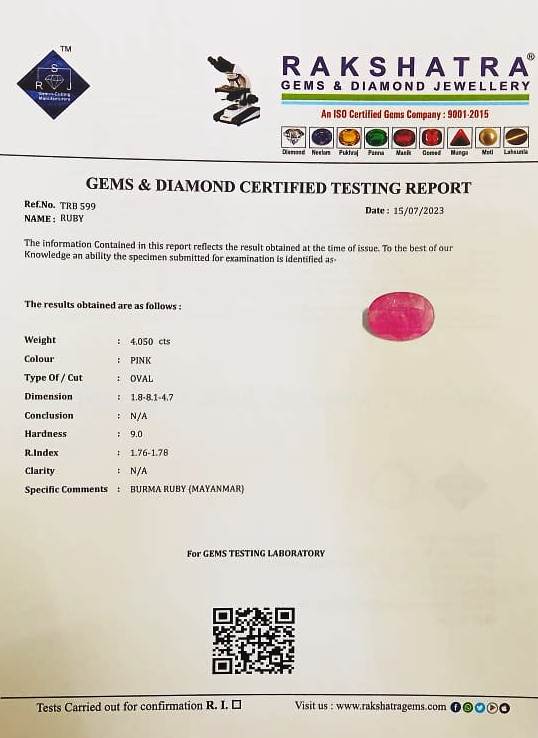 | SPECIFIC COMMENTS: | BURAMA RUBY { MAYANMAR } |