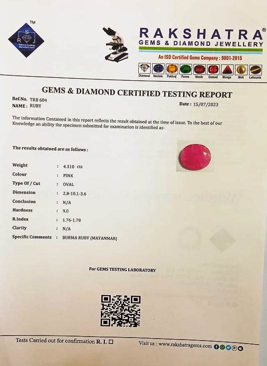 | SPECIFIC COMMENTS: | BURAMA RUBY { MAYANMAR } |