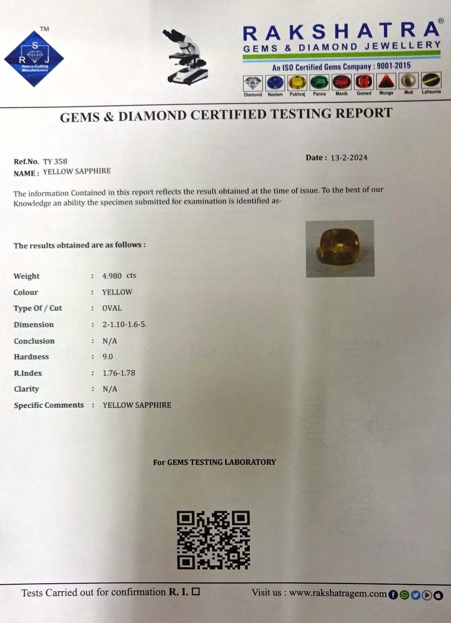 | SPECIFIC COMMENTS: | YELLOW SAPPHIRE |