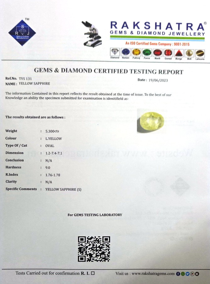 | SPECIFIC COMMENTS: | YELLOW SAPPHIRE { S } |