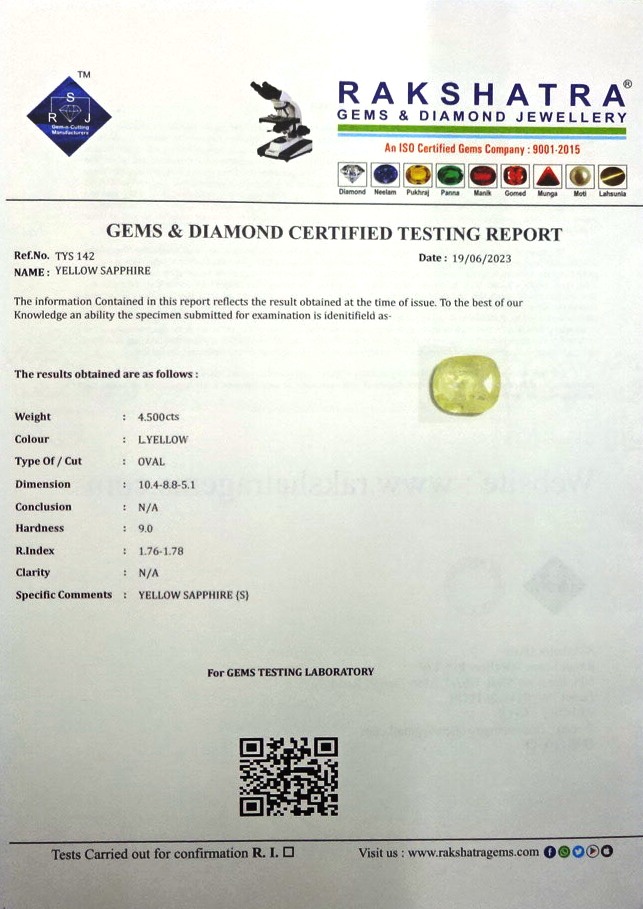 | SPECIFIC COMMENTS: | YELLOW SAPPHIRE { S } |