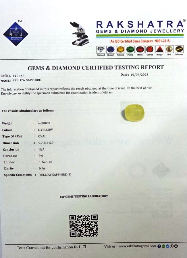 | SPECIFIC COMMENTS: | YELLOW SAPPHIRE { S } |