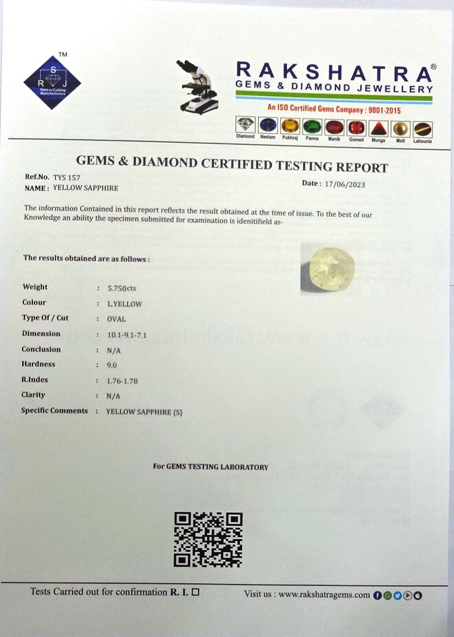| SPECIFIC COMMENTS: | YELLOW SAPPHIRE { S } |