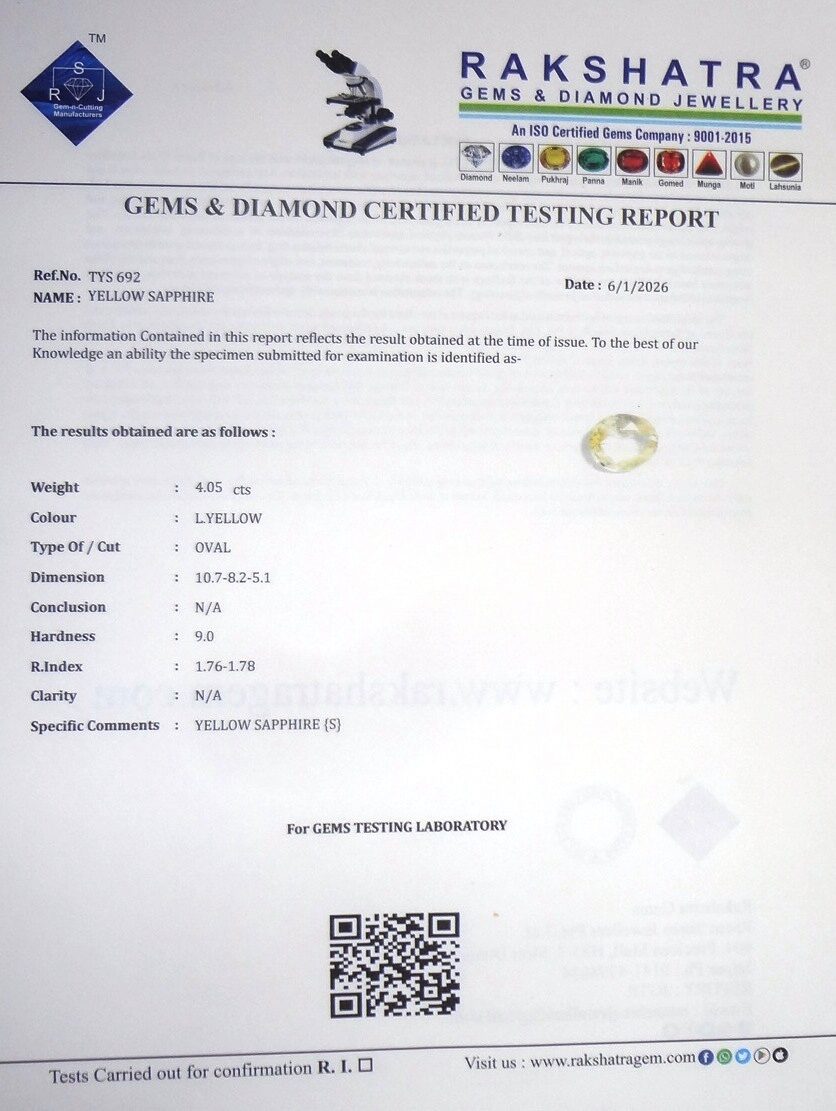 | SPECIFIC COMMENTS: | YELLOW SAPPHIRE { S } |